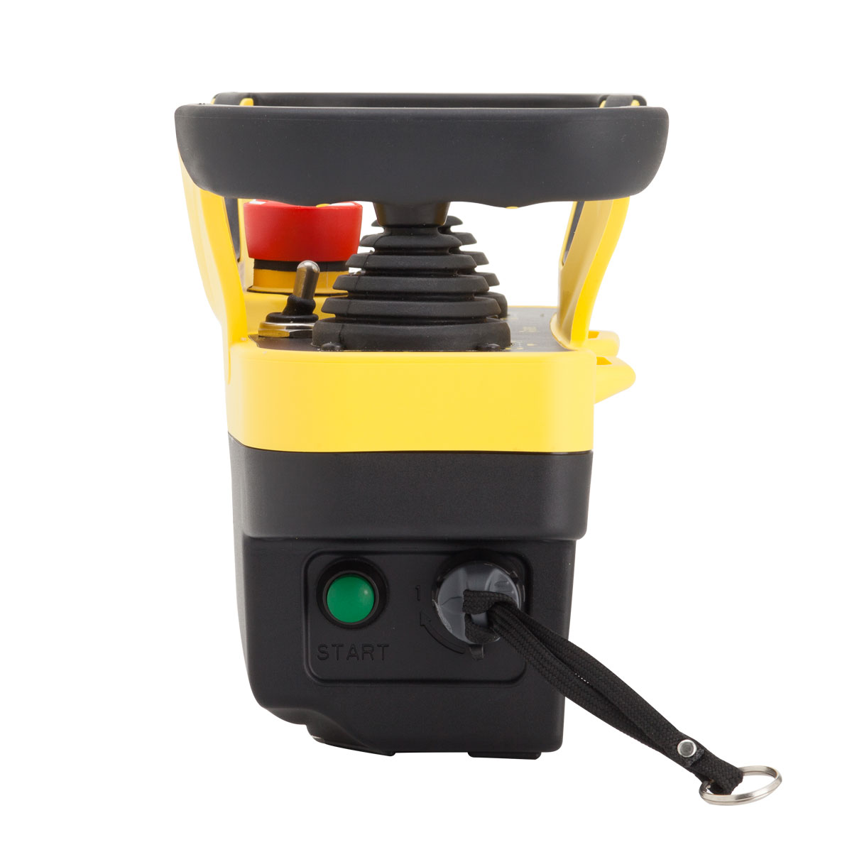 Joystick transmitting Radiocomanda AJS unit with either 1 or 3 dual-axis joysticks and up to 7 additional actuators + START and STOP. Available with digital commands or also including analog commands. Polyamide / fiberglass housing for greater resistance to external agents, IP65 protection degree, comfortable design for easy control.