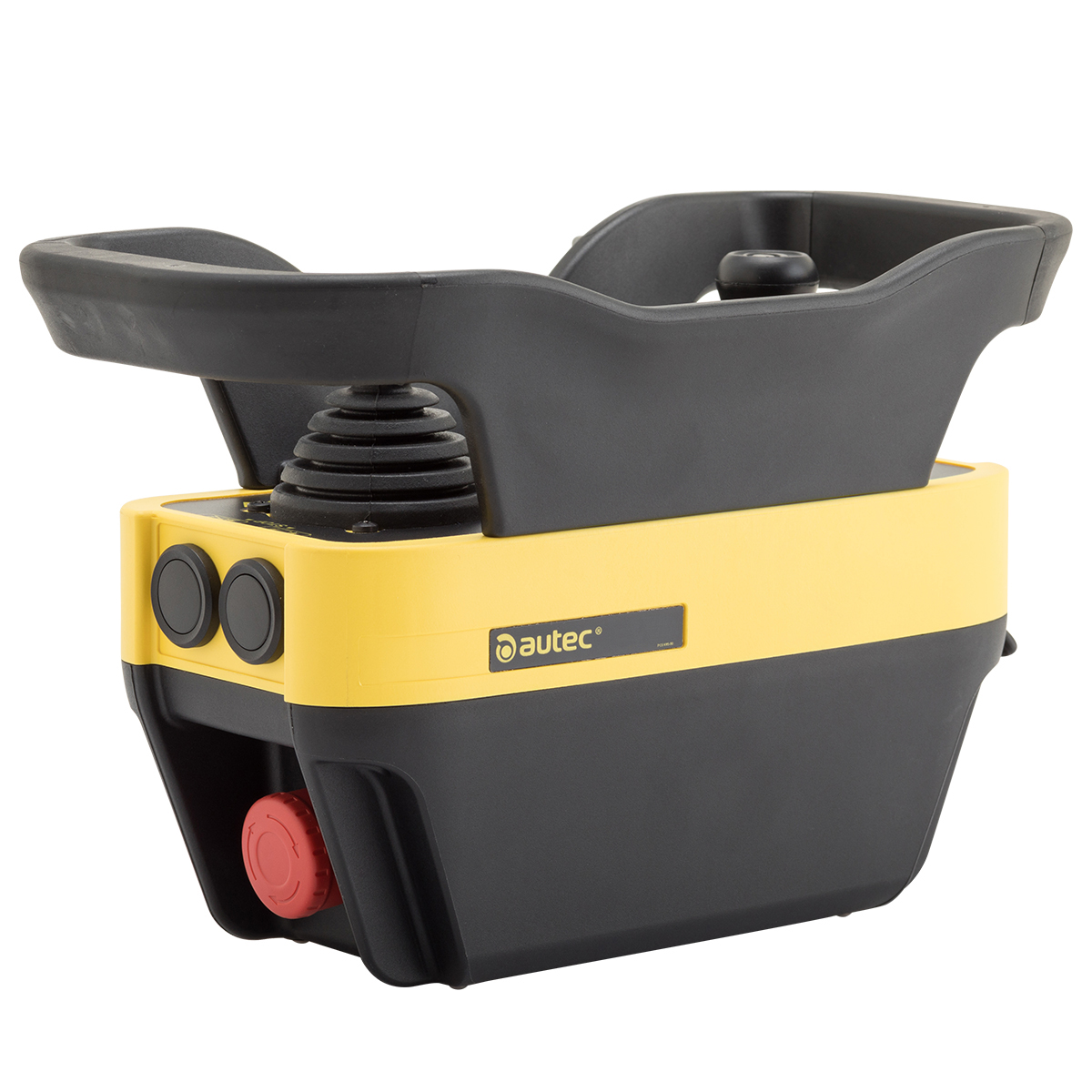 Emițător Radiocomanda COMPACT AJC. Autec COMPACT is a new portable unit for the remote control of machinery in multiple industries. With a highly reliable radio link and compliance to functional safety requirements this “compact” belt and harness transmitter is suited for use in demanding environments. Studied with an ergonomic shape to prevent involuntary activations and issues due to external interference during operation, its functional-area is optimized for a comfortable and easy access/grip of the actuators on top and sides. The top-frame integrate comfortable rubber handles and a TFT 2.8” color display. In all configurations mechanical and chemical resistance is granted as well as IP65 and 1.5m fall.