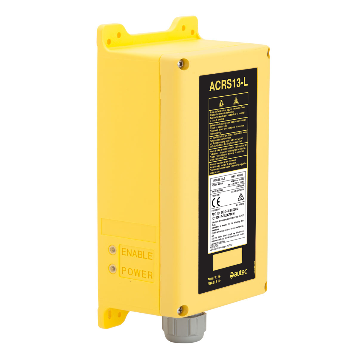 Receptor Radiocomandă ACRS13-G-L. Receiving unit AC power with 12 programmable relays + START/ STOP with either internal or external optional antenna. The ACRS13-G receiver is equipped with a replaceable power module and 4 inputs for Data Feedback, while the ACRS13-L is equipped with a fixed integrated power supply circuit.